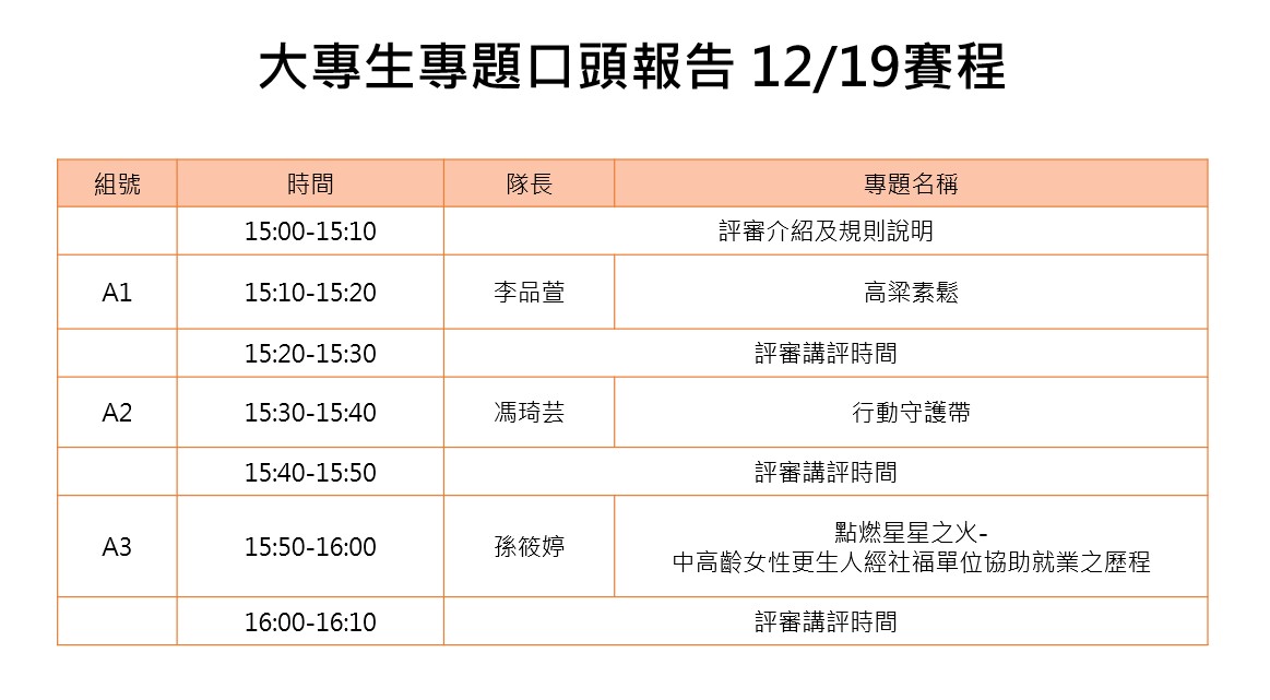 大專生專題口頭報告(A類)